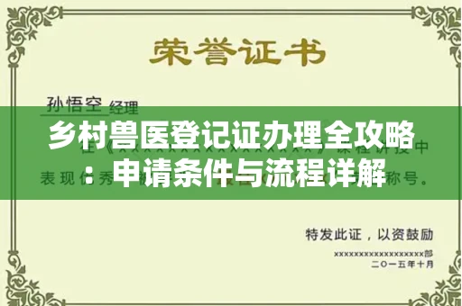 作为一名乡村兽医,想要合法执业,首先需要办理乡村兽医登记证。这个证书不仅是身份的象征,更是专业能力的体现。那么,乡村兽医登记证到底怎么办理?有哪些申请条件呢?接下来,我将为大家详细解答。
