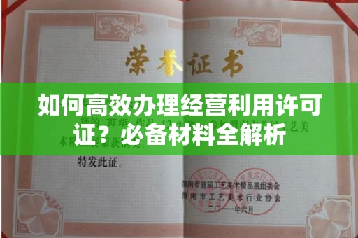 在当今的商业环境中,经营利用许可证是许多企业合法运营的必备证件。无论是新成立的公司还是已经运营多年的企业,了解如何高效办理这一证件,以及需要准备哪些材料,都是至关重要的。本文将为你详细解析办理经营利用许可证的全过程,帮助你顺利完成这一重要步骤。