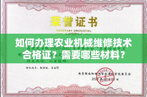 农业机械维修技术合格证是从事农业机械维修工作的必备证书,它不仅是对维修人员技术水平的认可,也是保障农业机械安全运行的重要凭证。那么,如何办理这个证书?需要准备哪些材料呢?下面我将为大家详细解答。